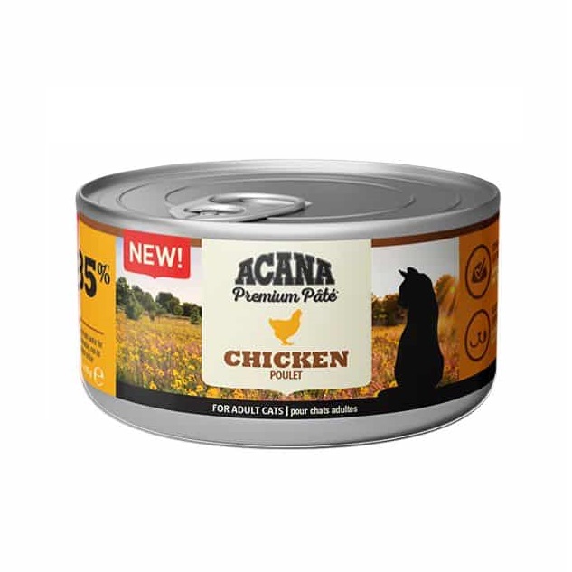 אקנה פטה פרימיום עוף הינו מוצר השייך למעדני אקאנה פרימיום החדשים. חברת אקאנה (Acana) מציעה מגוון של מזונות איכותיים לחתולים, המיוצרים מרכיבים טריים ומותאמים לצרכיהם התזונתיים. המזונות של החברה מכילים אחוזים גבוהים של בשר איכותי ומיועדים לספק לחתול את כל הדרוש לו להתפתחות תקינה ולבריאות מיטבית.