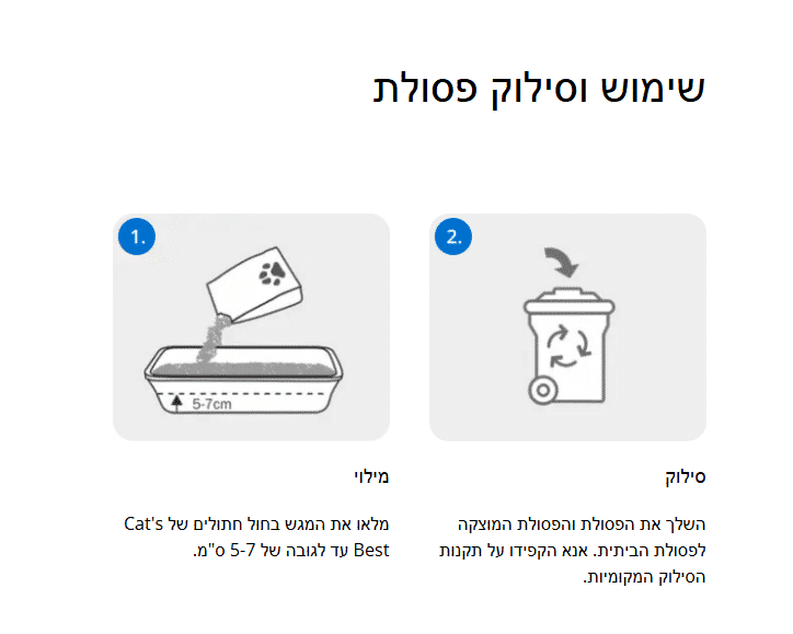 עם כושר הספיגה הגבוה שלו, Cat’s Best Universal אידיאלי גם כמצע בנוסף לאזורים רטובים טיפוסיים כגון שתייה וכו’.