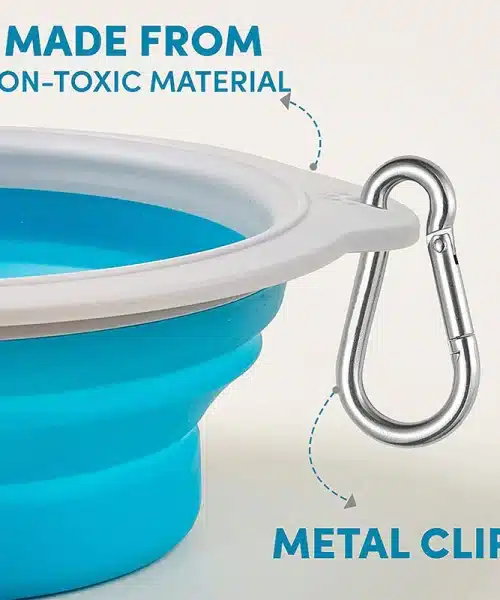קערת חיות מחמד עמידה מתקפלת המיועדת לנשיאה קלה מגיעה עם תפס שניתן לחבר לתיקים, תיקי גב וכו’ והיא אידיאלית עבורך לקחת לדרך.