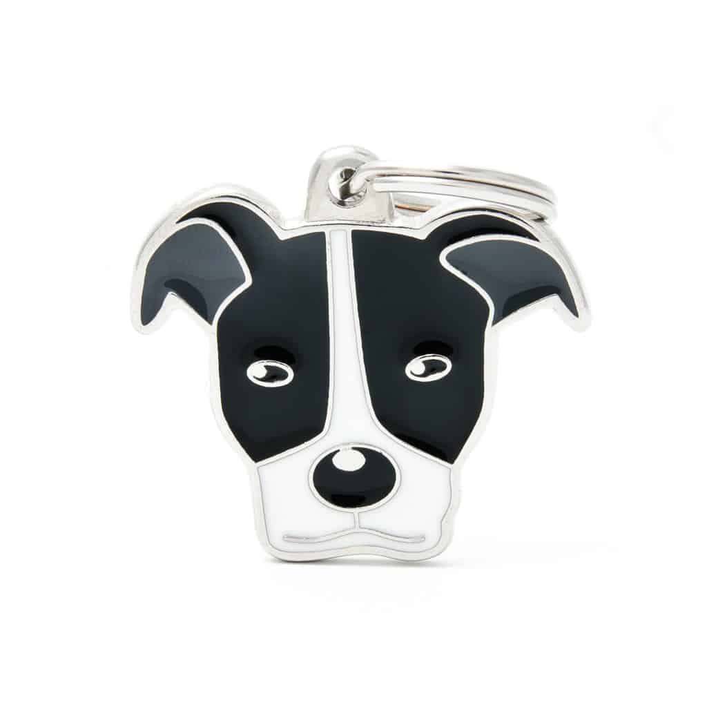 תג שם לחיות מחמד – פיטבול שחור לבן