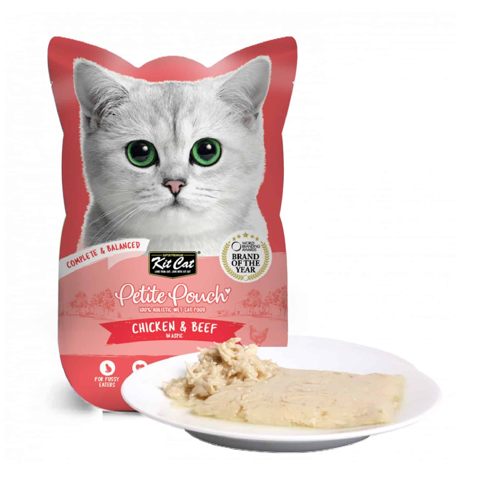 קיט קט פטיט פאוץ’ מלא ומאוזן עוף ובקר בג’לי
