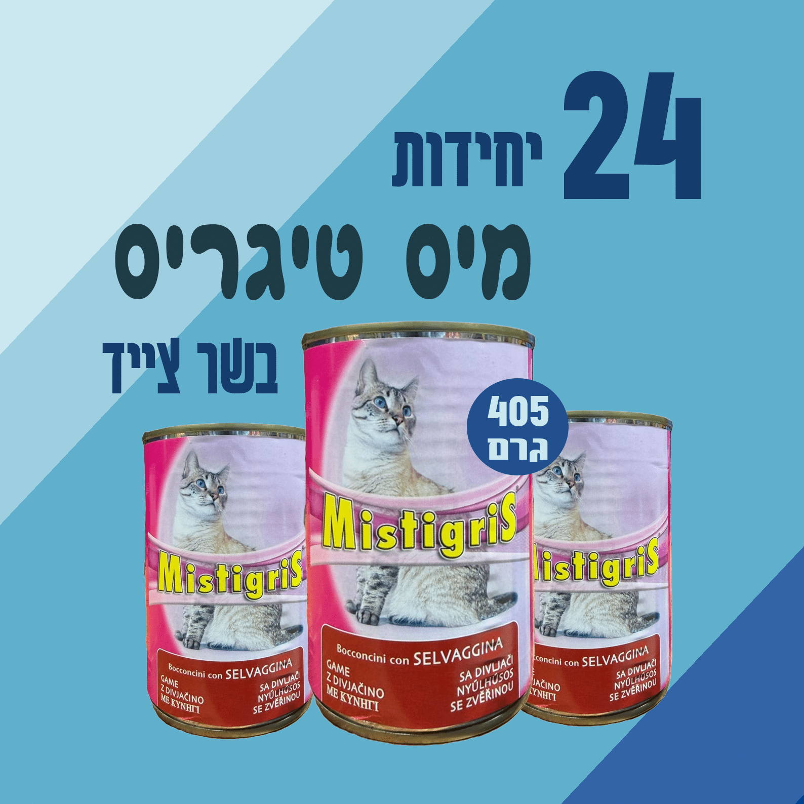 24 יח’ מיס טיגריס | נתחי בשר צייד לחתול | 405 גר’