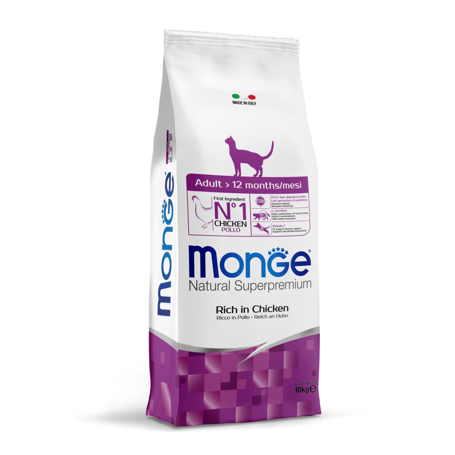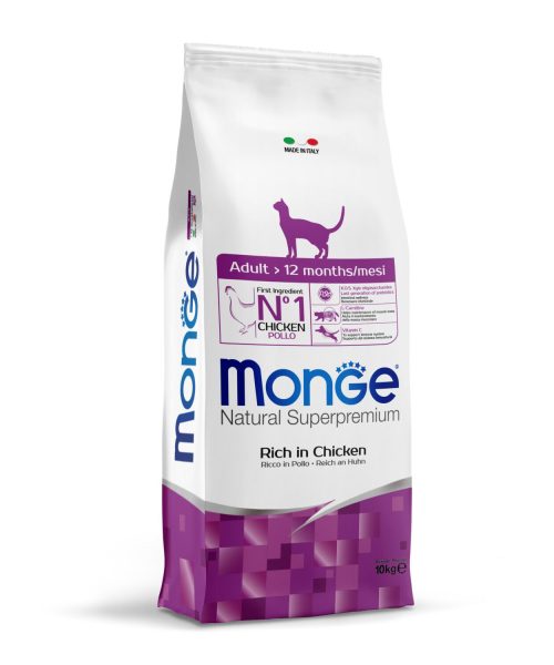 המזון היבש והטעים במיוחד מבית Monge מותאם לחתולים בוגרים מעל גיל שנה השוהים בבית אך נהנים גם מפעילות מחוץ לבית ביומיום. המזון היבש מכיל את כל המרכיבים הבריאים להם החתול זקוק ויאהב. המזון מבוסס על מרכיב עיקרי של בשר עוף טרי ומיובש, עם תוספת חלבון ביצה, שחתולים אוהבים במיוחד.