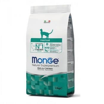 הכופתאות הטעימות והבריאות מסדרת ״הסופרפרימיום״ של חברת Monge הם האוכל המושלם לחתולים בוגרים הסובלים מתופעה של היווצרות כדורי שיער בקיבה. המזון מבטיח הרגשה כללית טובה של החתול הודות למרכיבי המזון הבריאים המכילים את כל אבות המזון להם הוא זקוק.