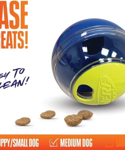 צעצוע חכם ומשעשע המשלב בין פעילות גופנית לפעילות מנטלית – פשוט מכניסים חטיפים לתוך הכדור, והכלב צריך לגלגל, לחקור ולהתאמץ כדי להוציא אותם.