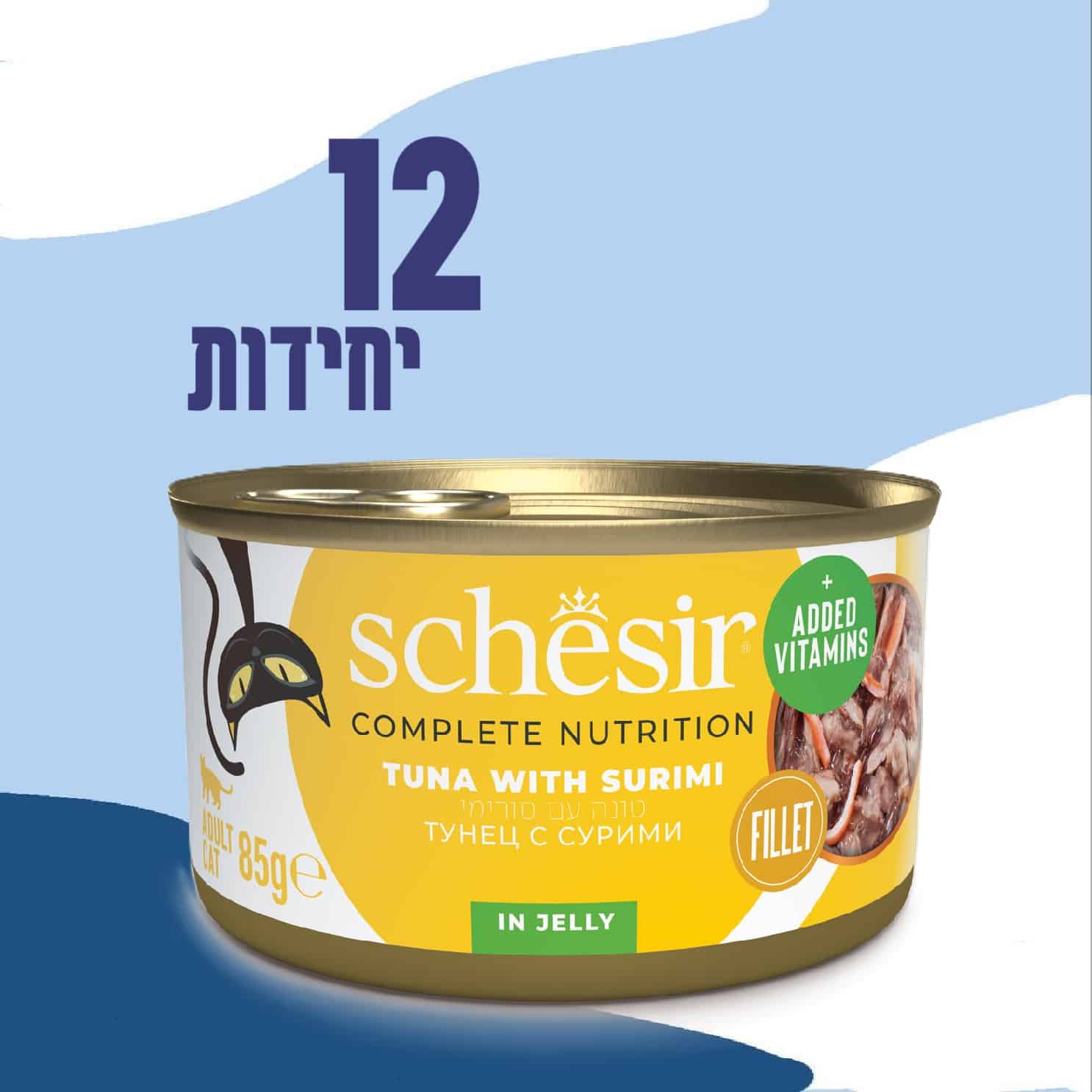 12 יח’ שזיר | מזון מלא לחתול – טונה וסורימי בג’לי | 85 גר’