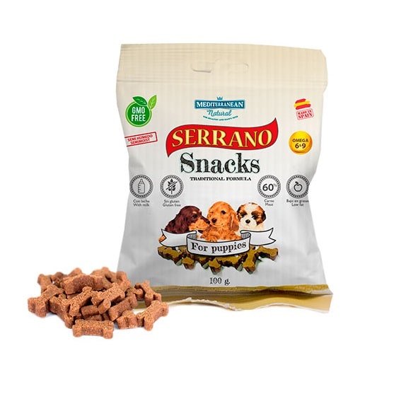 החטיף לגורים מכיל חתיכות קטנות חצי-רטובות בצורת עצם המותאמות במיוחד לגורים.