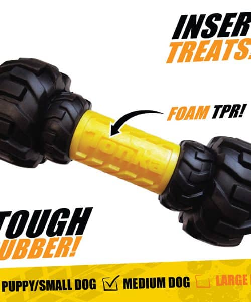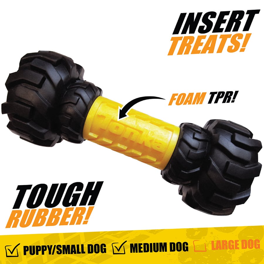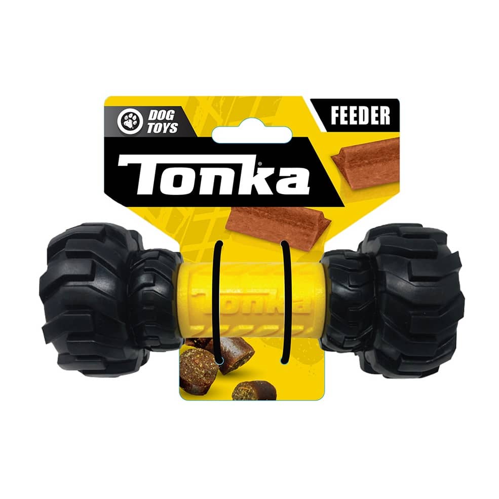 שמרו על הכלב שלכם מאושר, פעיל ומאותגר עם Tonka Axle Tread Feeder – צעצוע אינטראקטיבי ועמיד במיוחד שניתן למלא בחטיפים או מזון יבש.