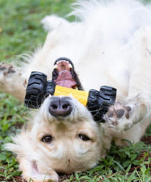 זהו גם צעצוע לעיסה קשוח במיוחד וגם מתקן האכלה – שילוב מנצח לפעילות גופנית וגירוי מנטלי.