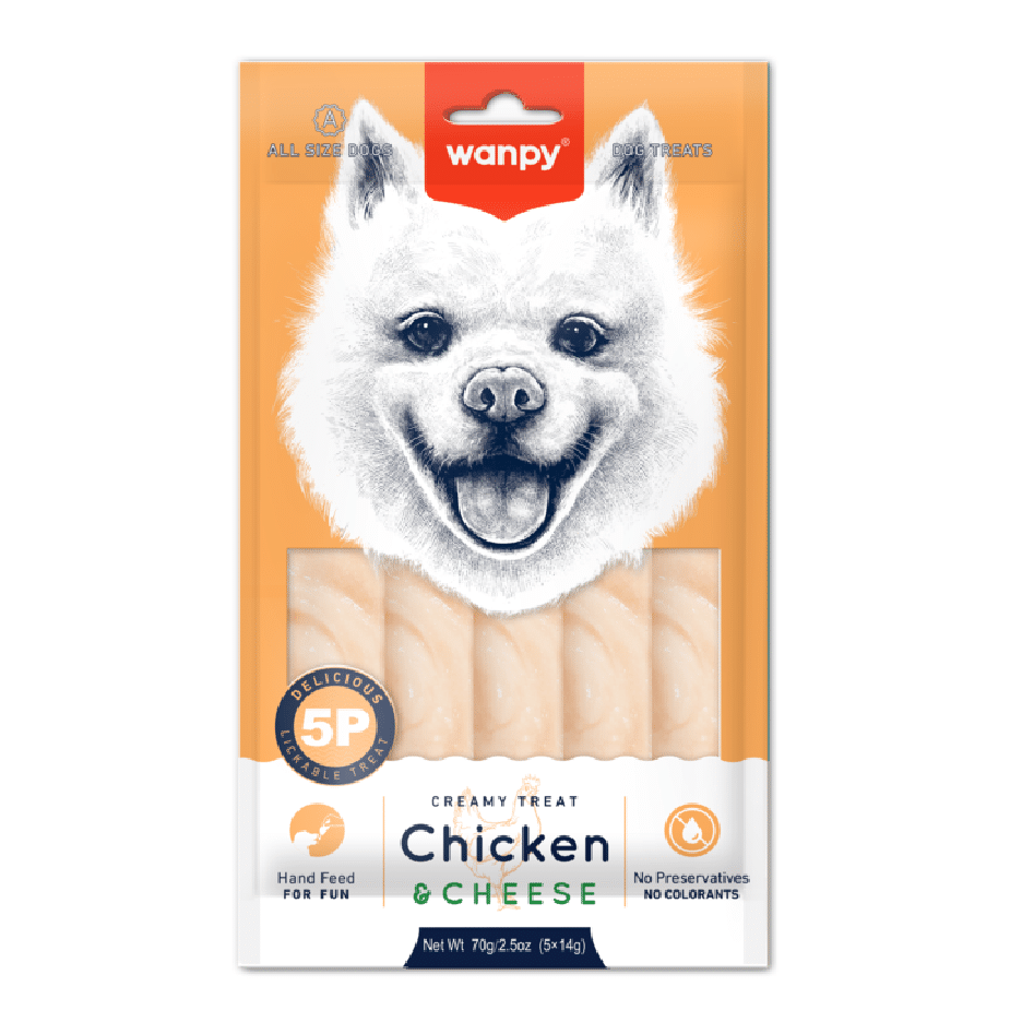 וונפי | חטיף רטוב קרמי לכלב – עוף וגבינה | 5 יח’